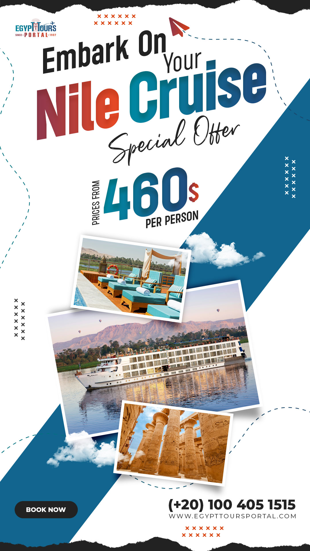 Ancient Egyptian history has marvelous stories to discover and share; so explore the breathtaking archaeological destinations across this majestic civilization by immersing yourself in an unforgettable journey to Egypt. Check our Egypt tour packages from UK and choose your trip onboard one of our magical Nile river cruises and cast your eyes on the stunning artifacts of Egypt.